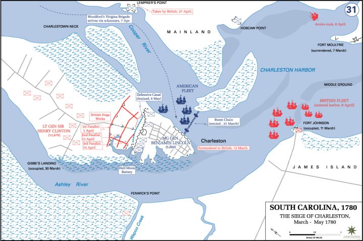 1780 British Siege of Charleston in Revolutionary War Map was pay back for Defense of Charleston in 1776!